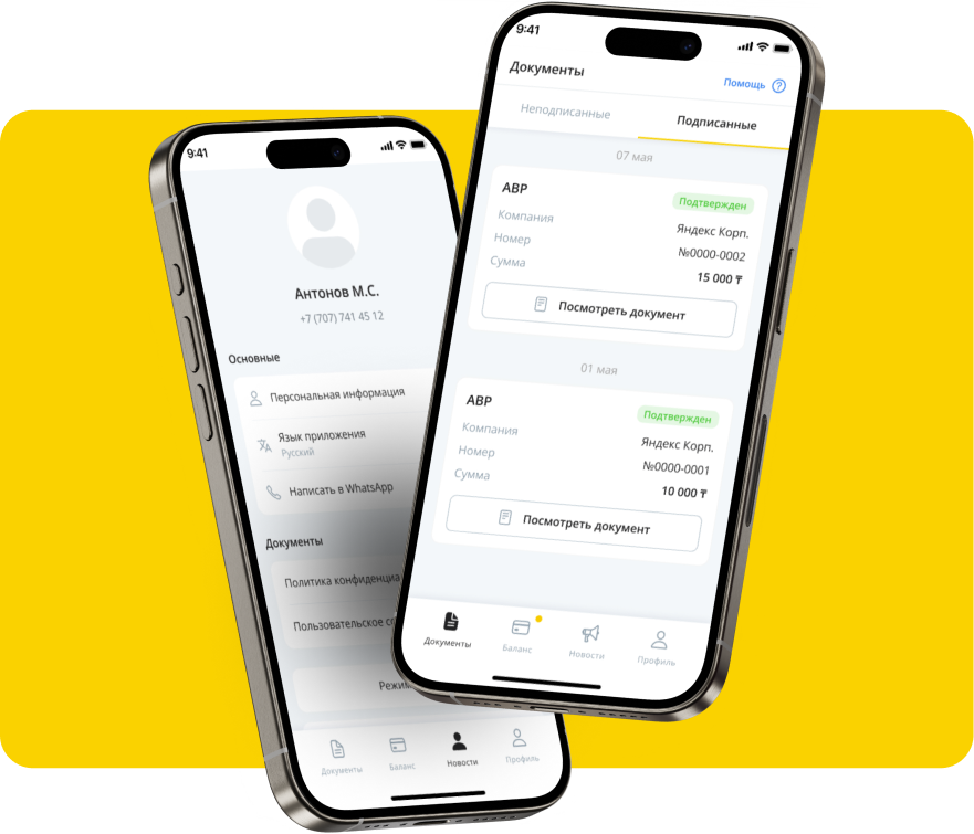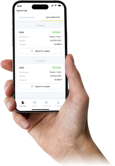 Электрондық құжат айналымы (ЭҚА) — орындалған жұмыстар актілеріне мобильді қосымша арқылы онлайн қол қойып, құжаттарыңызды уақытылы рәсімдеңіз
